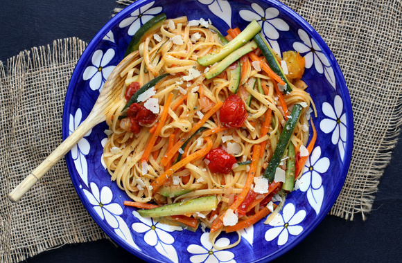 La cuisson prend une dizaine de minutes. Mélangez et servez avec le parmesan détaillé en copeaux.