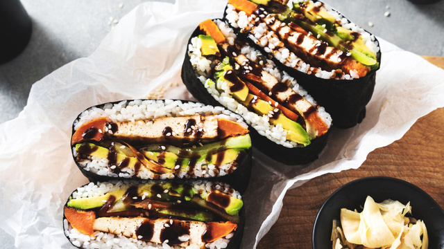 Vous pouvez mettre la garniture de votre choix. Certains font des onigirazu vegan à l'avocat, d'autres avec du poulet.