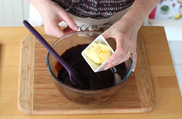 3Quand le mélange est à 40°C, ajoutez le beurre mou coupé en dés.