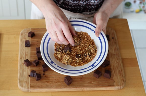 8Passez 1/3 des cubes dans la noix de coco râpée.
