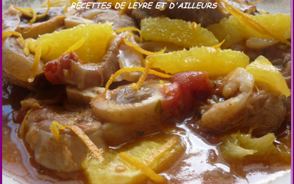 Puis ajoutez, les oignons, tomates, bouquet garni, saupoudrez de fond de veau et arrosez de vin blanc et de la tablette de bouillon diluée dans 20 cl d'eau, poivre. Laissez mijoter 1 H 20, jusqu'à ce que la viande se découpe facilement. Salez servir en disposant sur chaque assiette quelques quartiers d'oranges marinées.