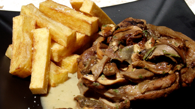 Servez ce délicieux Osso-Bucco avec de belles frites maison et en recouvrant le tout de la sauce à la crème et aux cèpes....