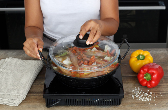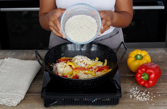 10Couvrez et faites cuire au four pendant 40 minutes, jusqu'à ce que le riz absorbe tout le liquide.