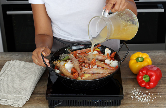 9Versez le bouillon sur l'ensemble des ingrédients. Salez et poivrez.