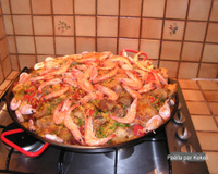 Paella quand tu nous tiens. La recette est pour 6 personnes mais la photo représente une paella famille nombreuse. J'ai augmenté les ingrédients.