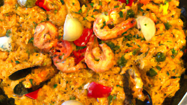 Faire revenir l'ail haché et l'oignon émincé, ensuite ajouter les poivrons, puis les tomates, les épices paëlla et le riz. Remuer pour enduire le riz d'huile (ça s'appelle : nacrer le riz) et le faire revenir. Quand il commence à devenir translucide, ajouter petit à petit le bouillon de volaille (rappel : un volume de riz = 2 volumes d'eau), laisser le riz absorber le bouillon avant d'en rajouter, à la manière d'un risotto. Ne pas cesser de mélanger. La cuisson du riz va prendre environ 25 mn. A 10 mn de la fin de la cuisson, versez les petits pois sur le riz. La cuisson est terminée lorsque le riz est cuit, l'eau est absorbée mais le plat reste encore un peu humide. Otez alors la poêle du feu et recouvrez la paella 5 mn pour que le riz termine d'absorber l'eau à couvert.