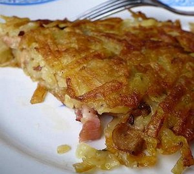 Verser le reste de pommes de terre et bien tasser dans la poêle avec une spatule. - 4