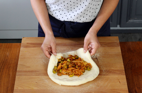 10Puis fermez la pâte en la rabattant au milieu, autour de la garniture.