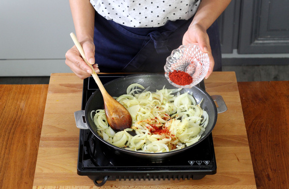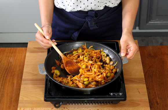 5Coupez les oignons en lamelles.