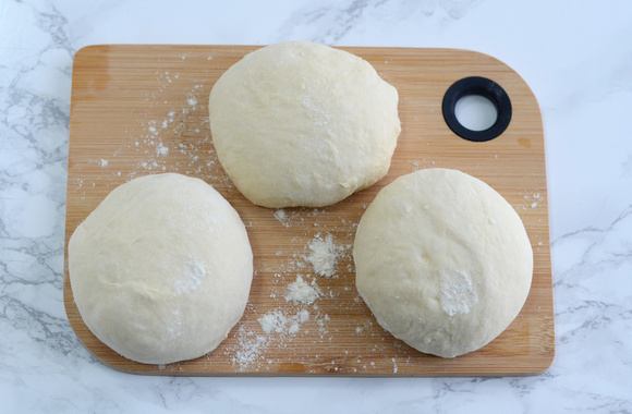 6Après le temps de pause, dégazez votre pâte et divisez-la en 3 pâtons égales.