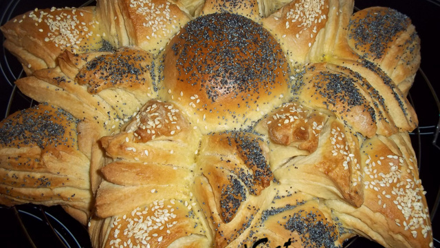 Pain très simple à réaliser sous forme de fleur de tournesol.