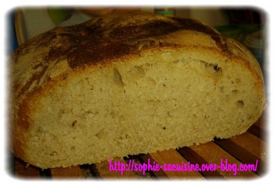 Formez votre miche, laissez-la lever 2 heures. Saupoudrez de farine, formez des grignes et enfournez pour 35 minutes à 190°C (four préchauffé) sans oublier le coup de buée !