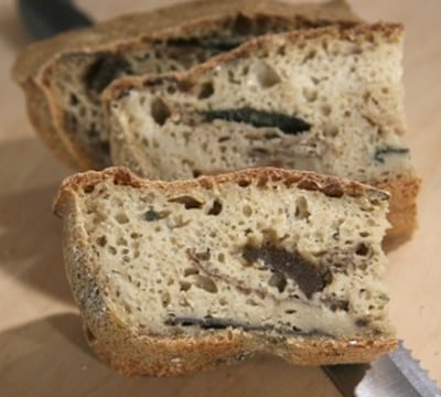 Un pain aux pommes de terre, aux cèpes et à l'ail. A servir avec du magret fumet, du Roquefort, de la confiture de figues et des noix pour un très chaleureux casse-croûte.