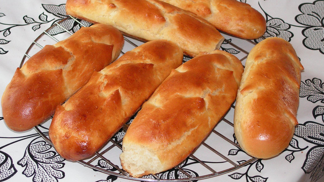 Former les pains de la taille d'une demi-baguette, les déposer dans une gouttière, et les laisser lever dans un endroit tiède pendant une heure.