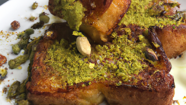 Saupoudrer le pain perdu de pistaches concassées et servez chaud.