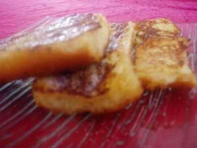Trempez les tranches de pain et faites les dorer à la poêle dans le beurre chaud (2 faces).