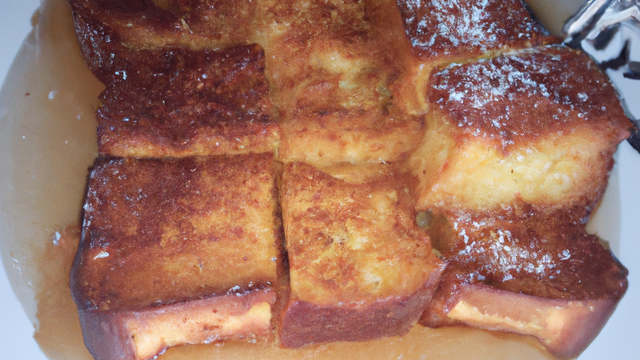 Le pain perdu, également connu sous le nom de "pain doré," est un délicieux plat à base de pain tranché trempé dans un mélange d'œufs battus, de lait et de sucre, puis doré à la poêle. Il est souvent agrémenté de sirop d'érable, de sucre en poudre ou de fruits pour une touche sucrée.