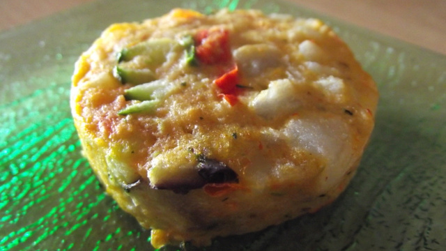 Une variante de ratatouille sous forme de palet aux légumes.