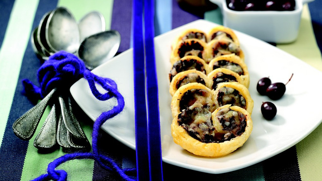 - 1Etalez la pâte feuilletée et coupez la de façon à obtenir un rectangle. Etalez la tapenade et disposez la tomme coupée en fines lamelles.