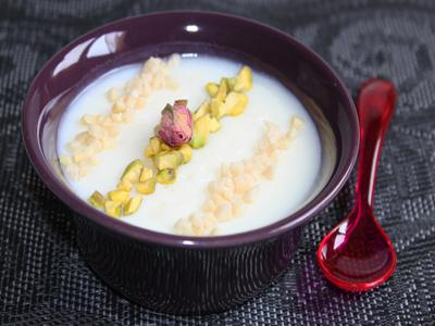 La palouza est un entremet à base de lait légèrement épaissi par de la maïzena...très rafraîchissant, il est orné de fruits secs et est délicatement parfumé à l'eau de fleur d'oranger mais vous pouvez aisément utiliser l'eau de rose si vous aimez cet arôme...