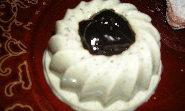 Une crème à la vanille recouverte d'un coulis de chocolat légèrement caramélisé... Dessert plutôt légers que vous pouvez accompagner de macarons à la noisette ....