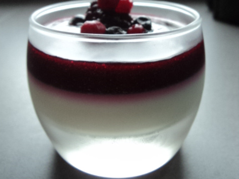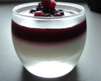 Une fois la panacotta bien prise verser le coulis de fruits rouge par dessus et décorer de fruit frais, c'est prêt bon appétit !