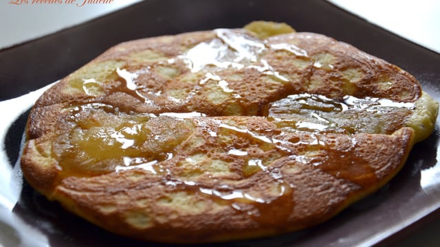 Après 2 minutes environ, retourner le pancake et laisser de nouveau cuire 1 minute. Servir de suite avec un peu de miel !