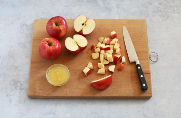 Lavez les pommes, coupez-les en quartiers sans les éplucher, ôtez-en les grains et le trognon.