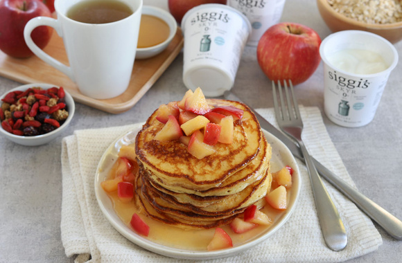 Des pancakes gourmands et super moelleux, grâce au skyr siggi's. Agrémentés avec des pommes caramélisées, ces pancakes sont idéaux pour un petit déjeuner cocooning ou pour un goûter.