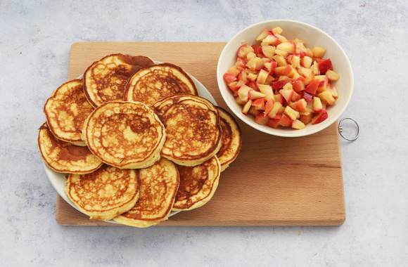 Ces pancakes peuvent être préparés à l'avance et réchauffés dans un four micro-ondes pendant quelques secondes à la puissance maximale. Les pommes caramélisées aussi.