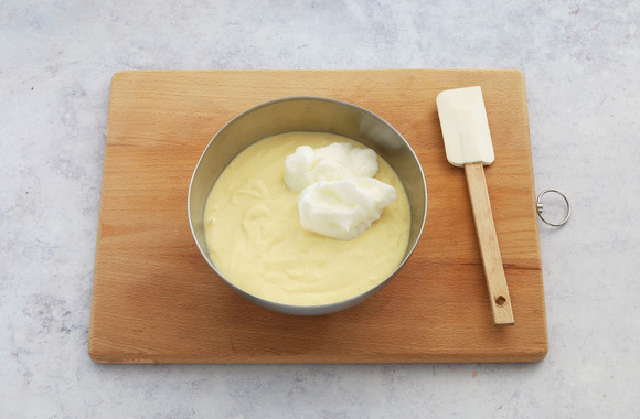 7A l'aide d'une spatule, incorporez les blancs montés en neige à la pâte.