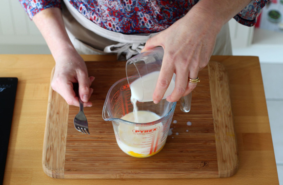 5Versez le lait et mélangez.