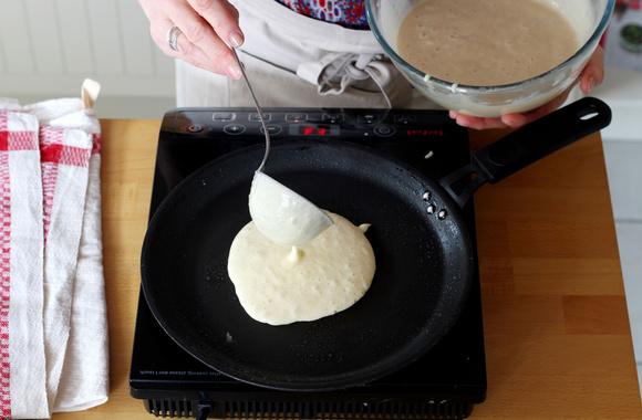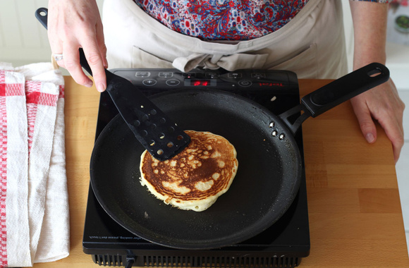 10Quand la surface se recouvre de petites bulles, retournez la pancake et prolongez la cuisson. Continuez avec le reste de la pâte.
