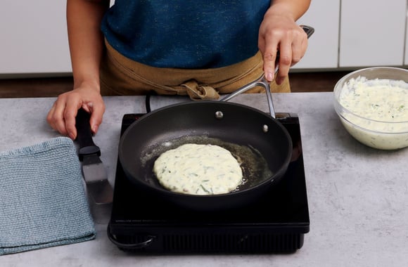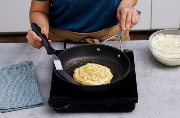 5Laissez cuire et dorer les deux faces du pancake sur feu moyen.
