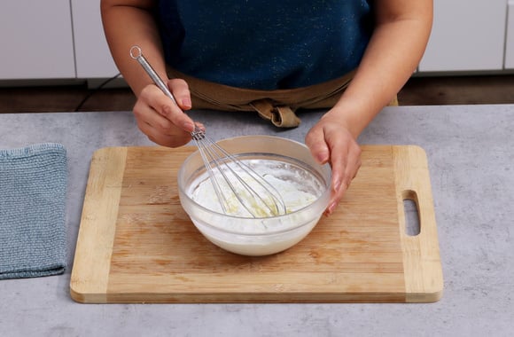 3Montez les blancs d’oeufs en neige puis mélangez-les à la pâte.