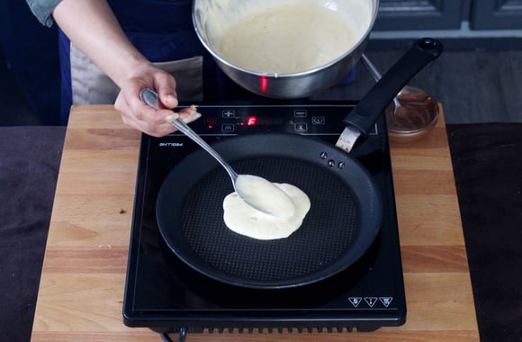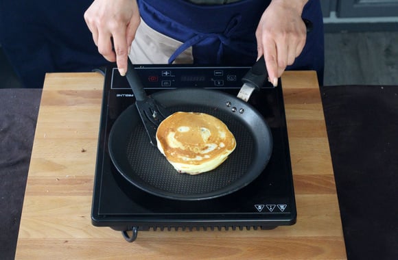 8Faites cuire sur feu moyen, retournez la pancke et faites dorer. Poursuivez dans la préparation des pancakes jusqu'à épuisement de la pâte.
