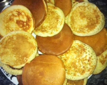 Laissez cuire jusqu'à ce que vous verrez des bulles à la surface, tournez et laisser encore prendre couleurs. Servez chaud avec du miel ou chocolat à tartiner.