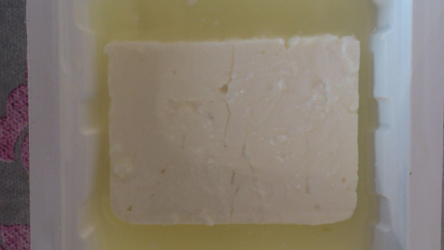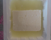Une heure après il est bien froid, on peut le couper en dés. Le paneer n'est pas très dur, il est moelleux.