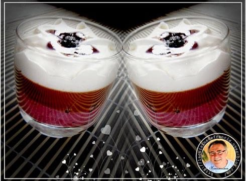 - au moment de servir, prendre le siphon le secouez et mettre la chantilly dans chaque verrine.