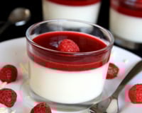 Verser le coulis de framboises sur la panna cotta prise et placer une framboise pour la décoration.