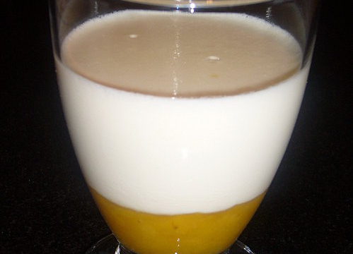 Égoutter la gélatine et l'ajouter dans la casserole, mélanger et verser dans les coupes sur la compote de mangue. - 3