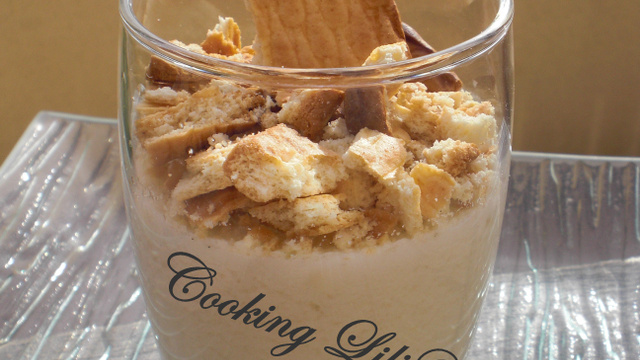 Une fois la crème prise, émiéttez chaque petit gâteau dans chaque verrine puis servez aussitôt.