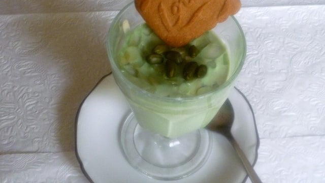 Laisser refroidir au réfrigérateur et avant de servir, décorer de pistaches.