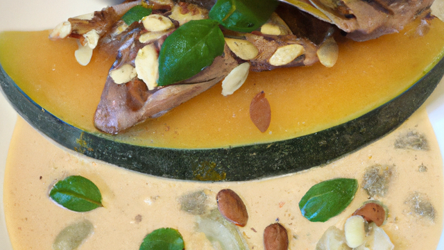 Tranchez les magrets en fines tranches, et servez accompagnés de melon snacké aux amandes, et de crème de basilic.