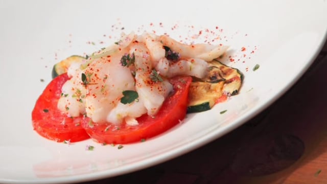 Tailler la lotte en fins médaillons de 3 à 4 mm. Déposer la lotte sur une assiette, retirer les courgettes du barbecue. Prendre une feuille d'aluminium, ajouter de l'huile et étaler au pinceau, saler, poivrer et ajouter les lamelles de courgettes bien étalées. Ajouter les rondelles de tomates, des oignons émincés, saler et ajouter du piment d’Espelette, des fleurs de thym, puis ajouter les médaillons de lotte. Saler et ajouter un peu de piment d’Espelette, du thym, du zeste de citron, un peu de persil et un filet de jus de citron vert. Fermer la papillote hermétiquement, faire cuire 7 à 8 minutes sur le barbecue.