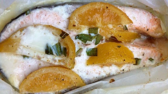 J'ai donc choisi de l'accompagner d'une papillote de saumon au citron confit et de coriandre fraîche!