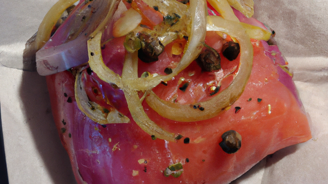 Mettre un pavé de saumon dans l'alu, badigeonner d'huile d'olive, étaler une c à café de tapenade puis quelques rondelles d'oignon rouge, poivrer.