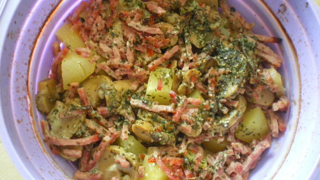 Disposer les dès de pommes de terre avec tous les autres ingrédients dans une papillote en silicone.