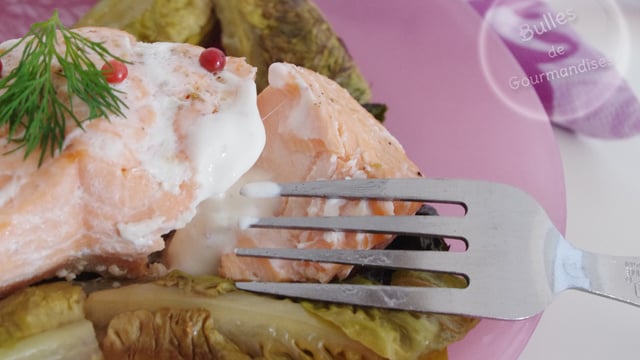 - 4Une fois le saumon cuit, il n'y a plus qu'à servir. Vous pouvez l'accompagner d'autres sucrines braisées, d'un écrasé de pomme de terre ou de riz. C'est tout simple, rapide et très bon. Un autre avantage, cela peut se préparer à l'avance et cuire pendant que vous prenez tranquillement l'apéritif avec vos convives. Recettes expérimentées en condition extrême... 18 à table et nos stress !