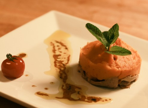 Sortez ensuite la viande du four, récupérez le jus, puis découpez l'épaule en fine tranches. Pour le montage, je vous conseille de prendre un emporte pièce, de déposer dans le fond des morceaux d'agneau puis de les napper avec une Cs. de jus de cuisson et mettre la purée de carotte par dessus. Placez ensuite au grille pendant 5 mn et c'est prêt.